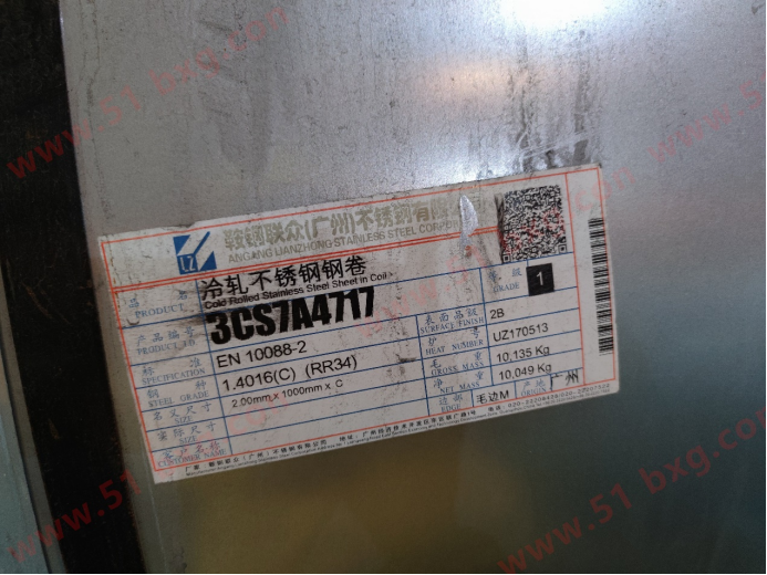 據本網(wǎng)跟進(jìn)了解,此為鋼廠(chǎng)出口歐洲的430材料。在產(chǎn)品標簽的標準一欄也是寫(xiě)了EN 10088-2字樣。